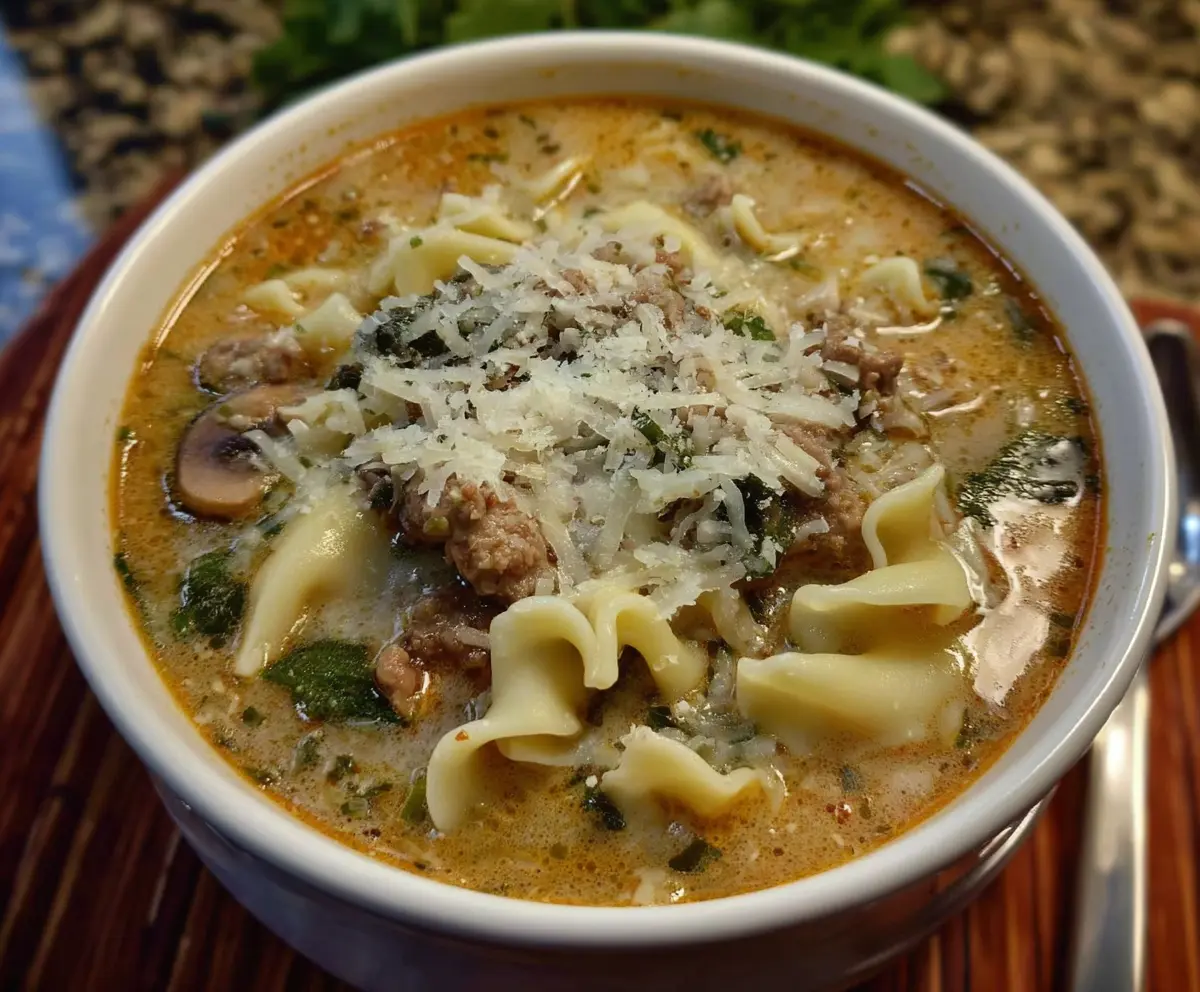 This Alfredo Lasagna Soup is a warm and cozy dish that’s perfect for chilly nights. It combines creamy Alfredo sauce, tender pasta, and plenty of cheese for a real treat!