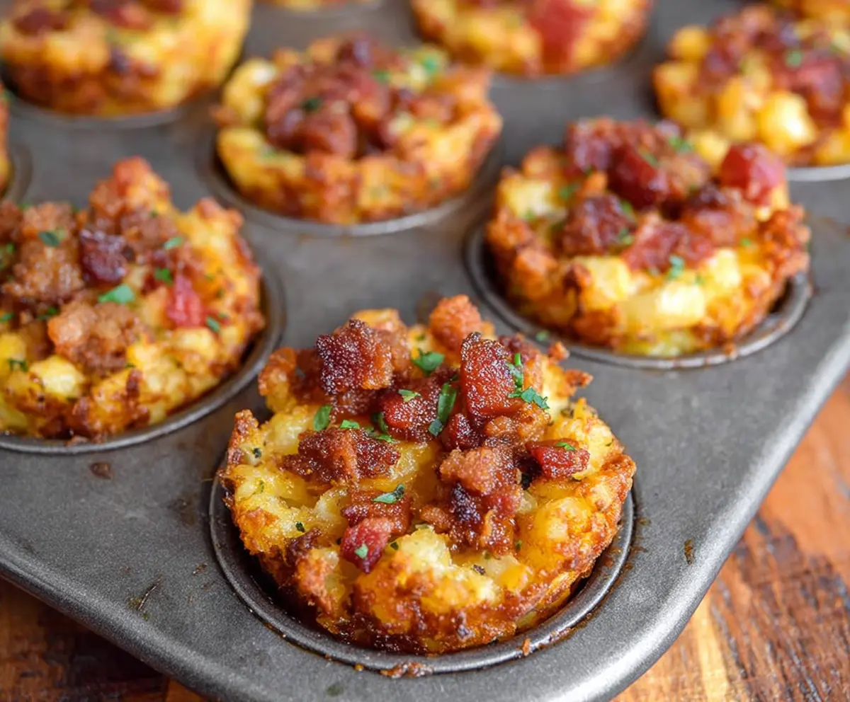 Bacon Tater Tot Cups are a fun and tasty treat! They combine crispy tater tots with savory bacon and gooey cheese, all baked in a muffin tin.