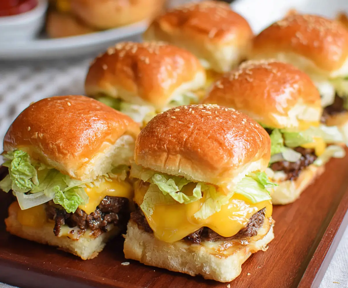 These Big Mac Cheeseburger Sliders are mini versions of the classic favorite! Layered with juicy beef, melted cheese, pickles, and a special sauce, they are perfect for any gathering.