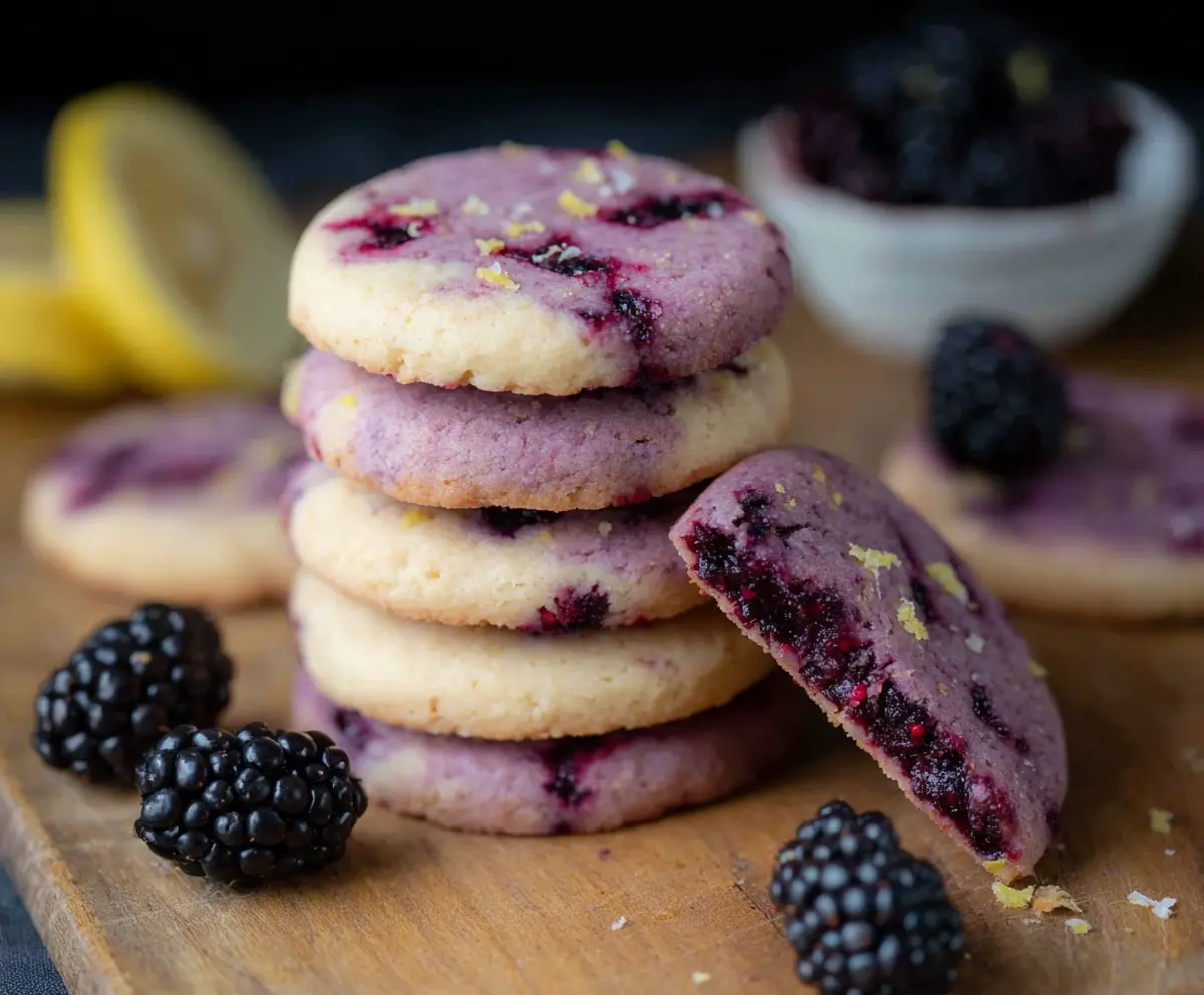 These Black Raspberry and Lemon Shortbread Cookies are a tasty treat! The sweet black raspberries mix perfectly with the zesty lemon, creating a burst of flavor in every bite.