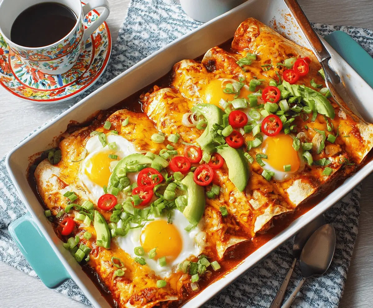 Breakfast enchiladas are a tasty way to start your day! They’re filled with eggs, cheese, and your choice of spicy toppings wrapped in soft tortillas.
