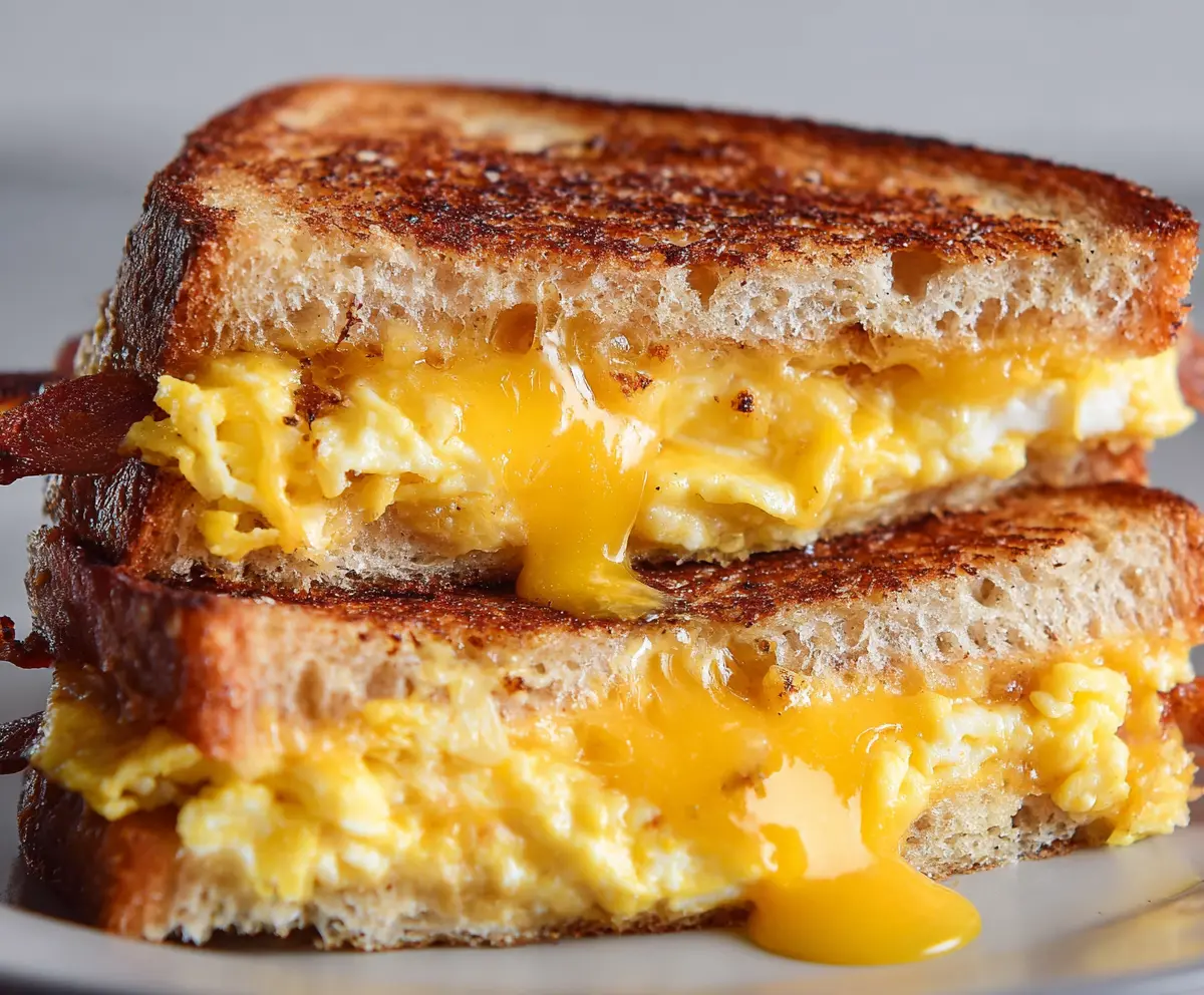 This breakfast grilled cheese is a tasty twist on a classic! Melted cheese pairs perfectly with crispy bread, and you can add eggs or bacon for extra yummy goodness.