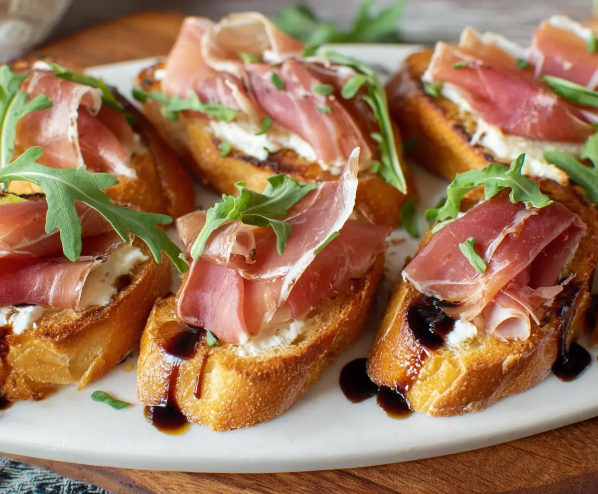 These crostini beautifully combine the creamy richness of Brie with the salty delicacy of prosciutto, perfectly balanced by the sweet balsamic glaze and peppery arugula. Excellent as appetizers or party snacks!