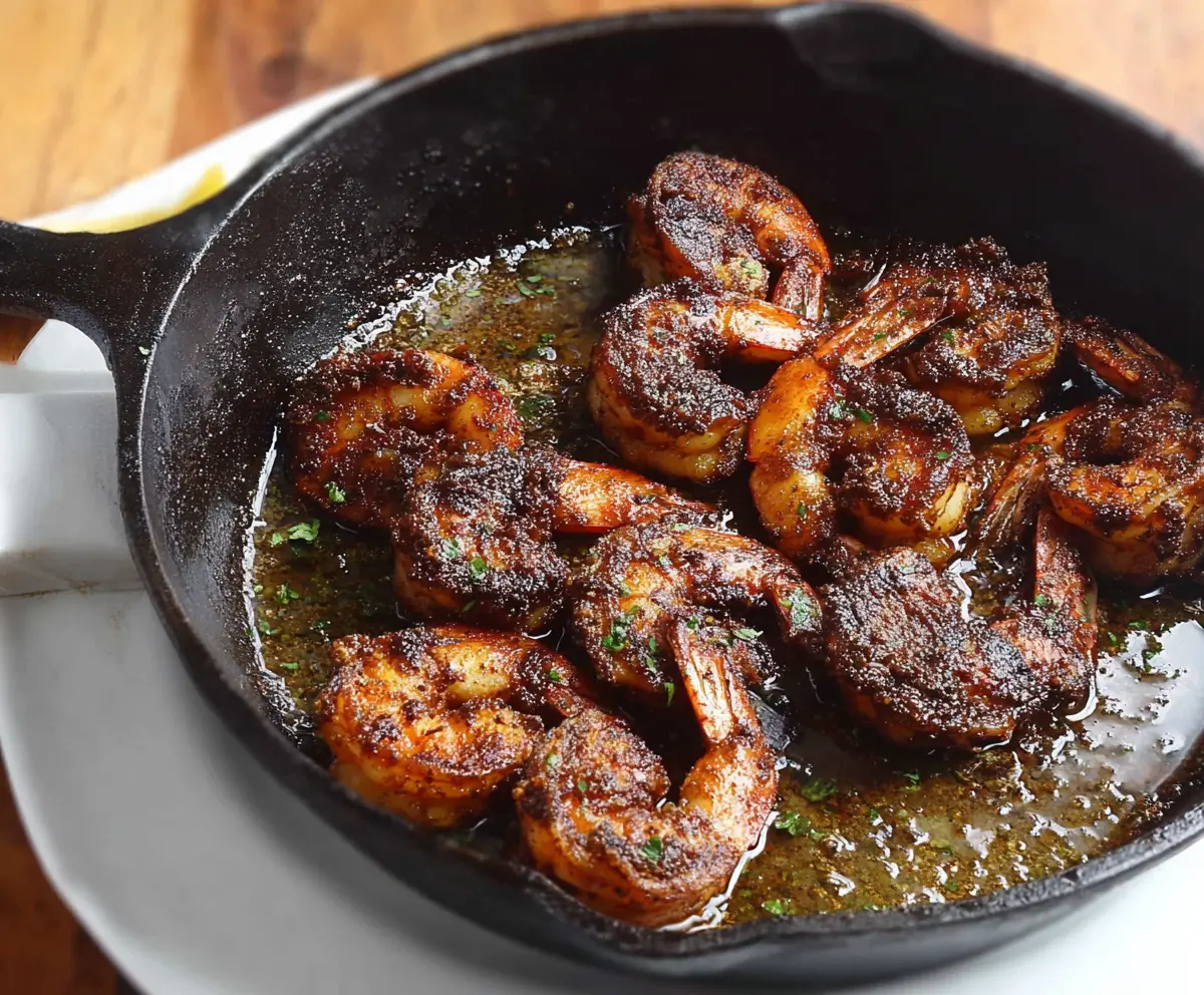 Heat a large cast-iron skillet or a heavy-bottomed pan over medium-high heat until it’s very hot. Once hot, add the shrimp in a single layer—don’t overcrowd the pan. Cook for about 2 minutes without moving them around until they start to blacken. Then, flip the shrimp and cook for another 1-2 minutes until they’re fully cooked and opaque.