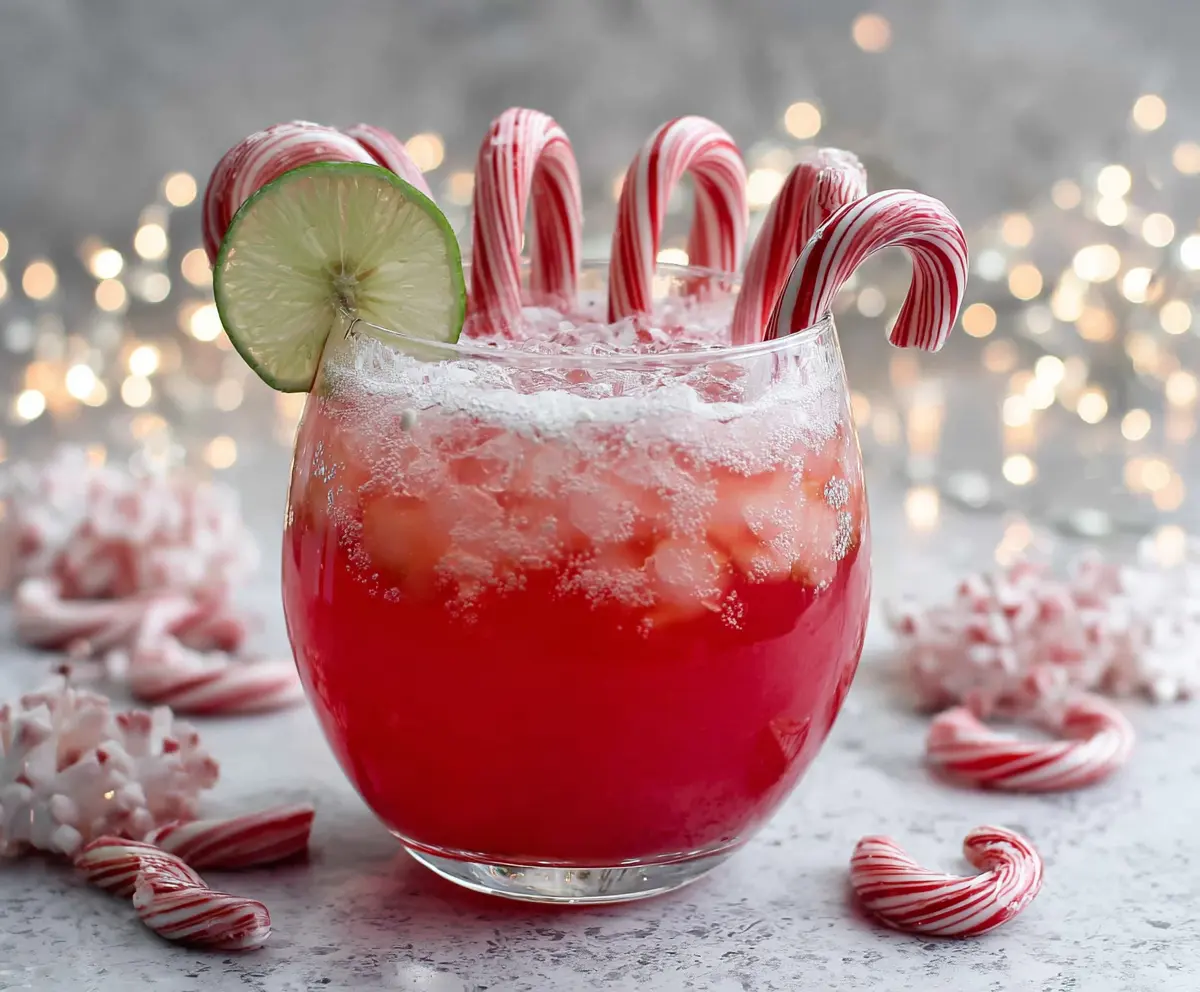 Make your drinks look extra special by garnishing each glass with a few fresh cranberries, a sprig of mint, a mini candy cane, and a lime wedge on the rim. These little touches add flavor and a fun holiday presentation!