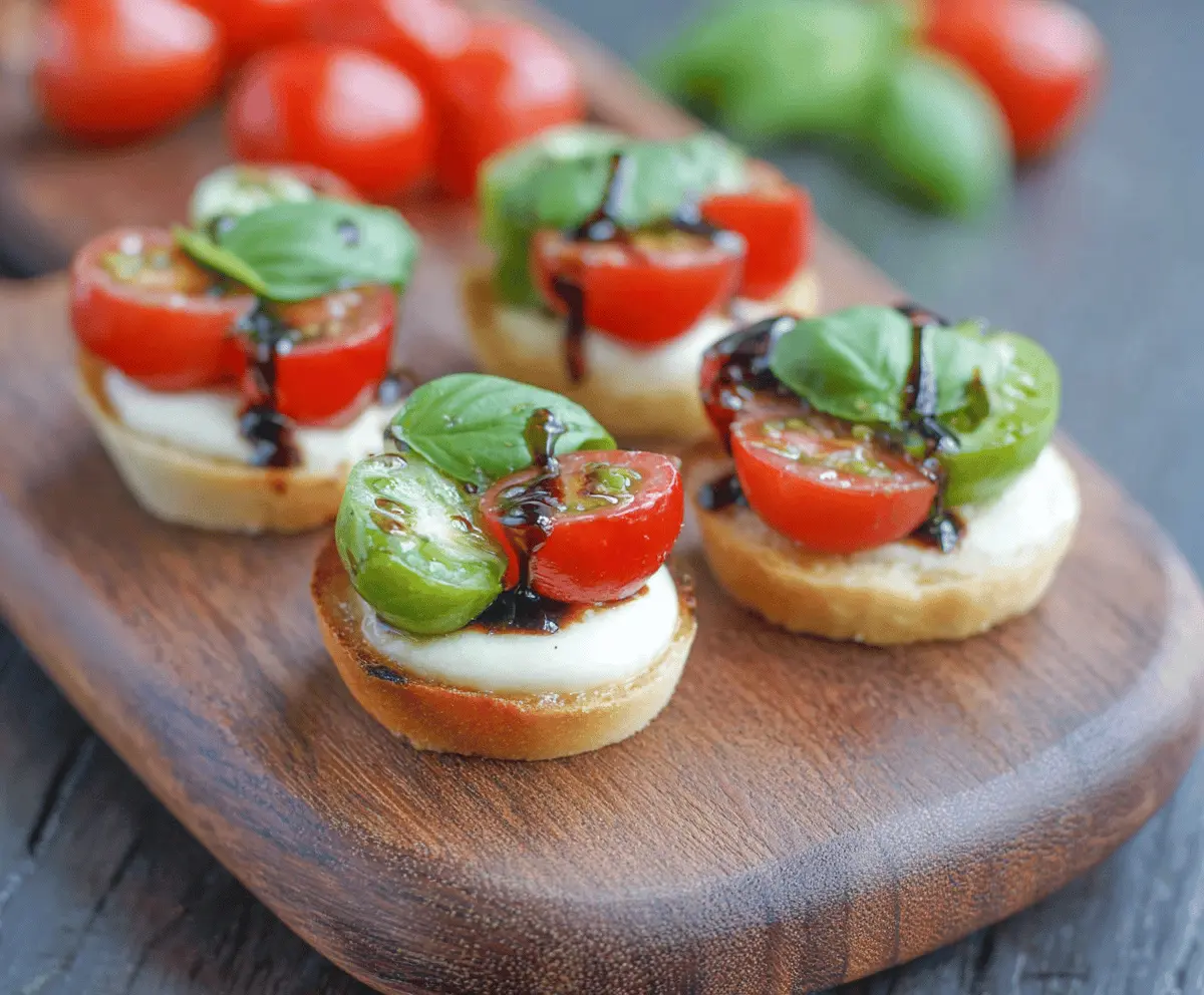 Caprese Bites are a fun and tasty snack! They’re made with fresh mozzarella, sweet cherry tomatoes, and basil, all drizzled with a bit of balsamic glaze.