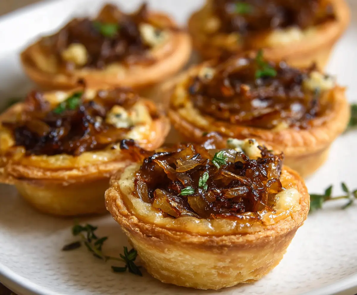 These caramelized onion tartlets are little bites of goodness! They feature golden, sweet onions baked in a flaky pastry, making them perfect for snacks or appetizers.