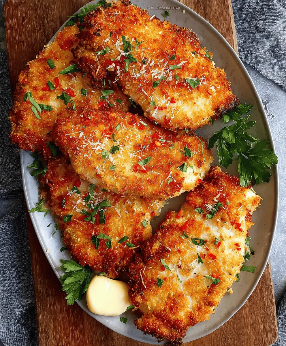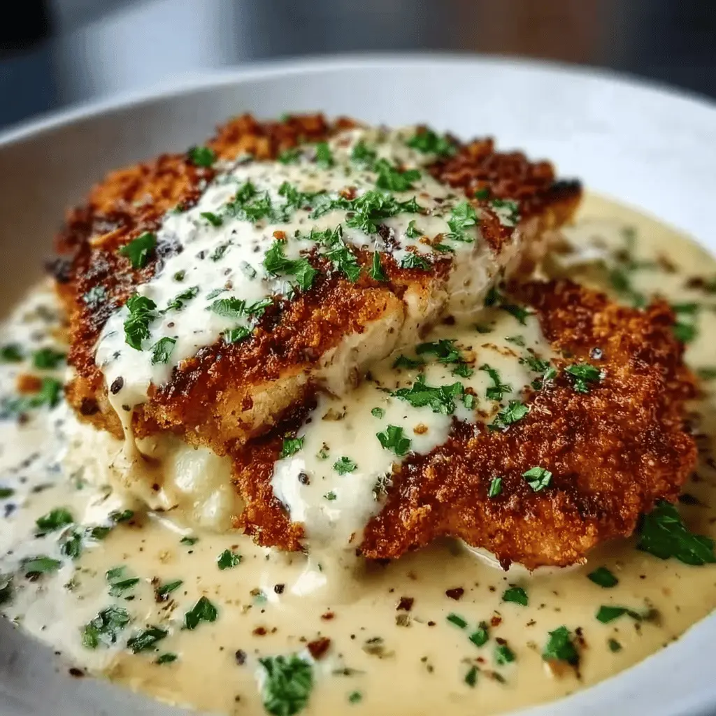 Crispy Parmesan Chicken with Creamy Garlic Sauce