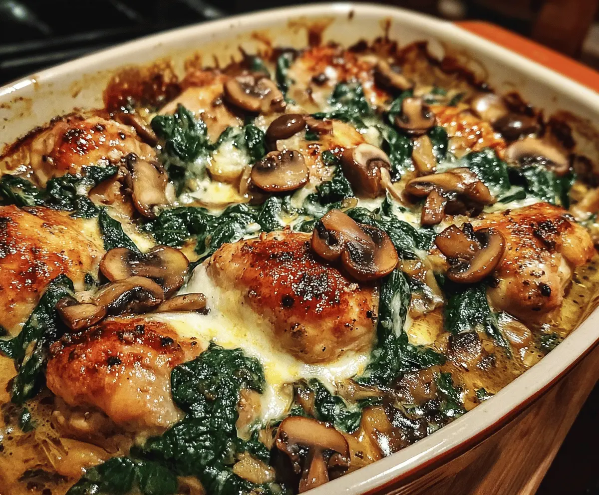 Easy Low-Carb Chicken Spinach Mushroom Bake