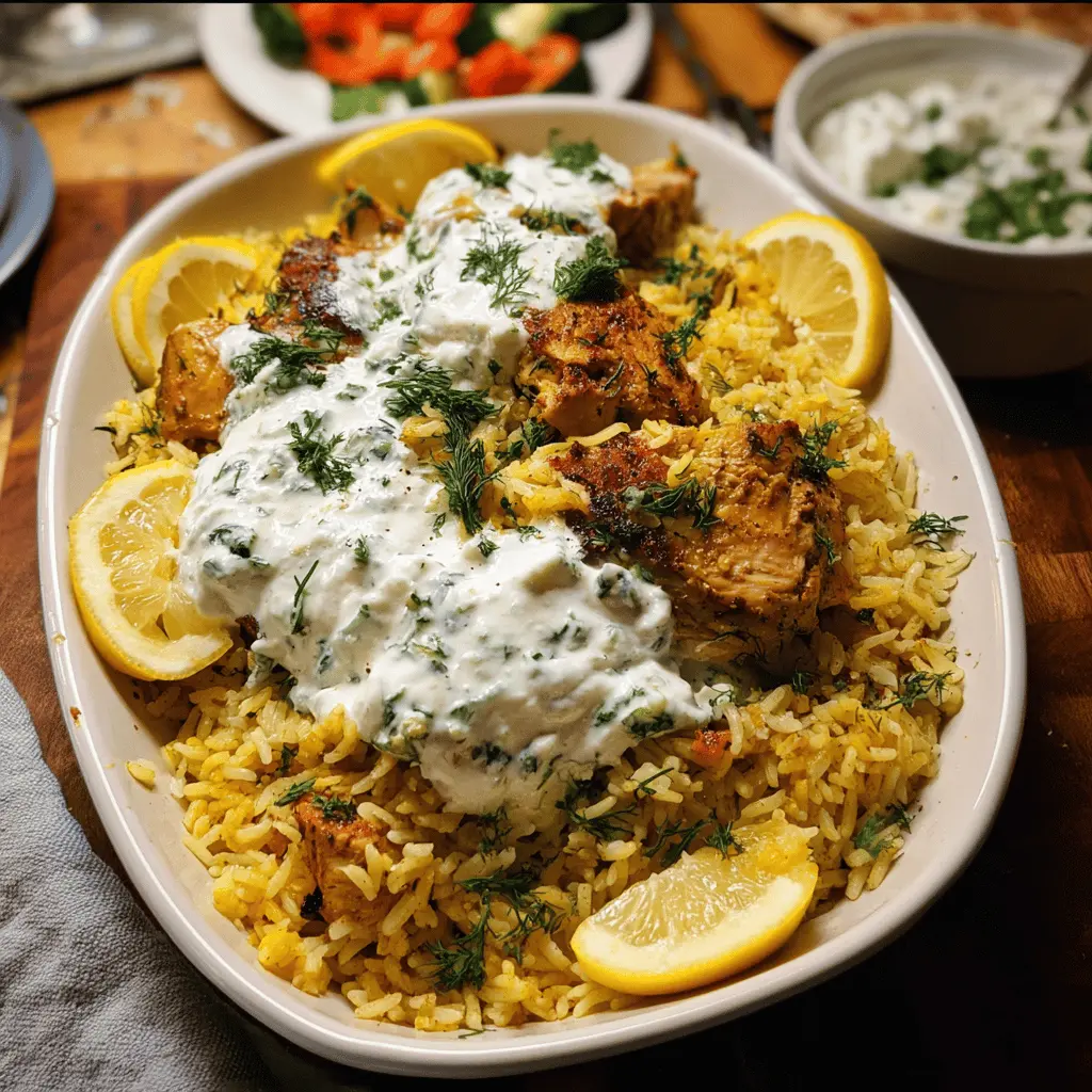 Easy Dump and Bake Chicken with Tzatziki Rice