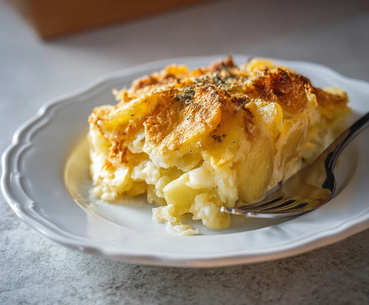 Enjoy the creamy, cheesy, and crispy deliciousness of this delightful cheesy potato casserole!