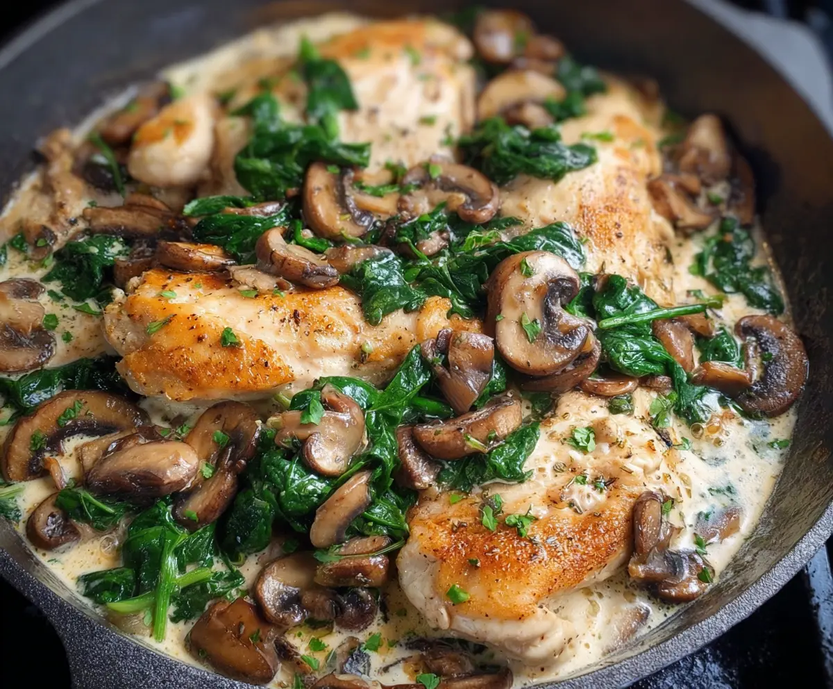 Garnish with fresh parsley or thyme if you like, then serve your Chicken Mushroom Spinach Skillet hot! It goes perfectly with rice, pasta, or some crusty bread to soak up that delicious sauce.