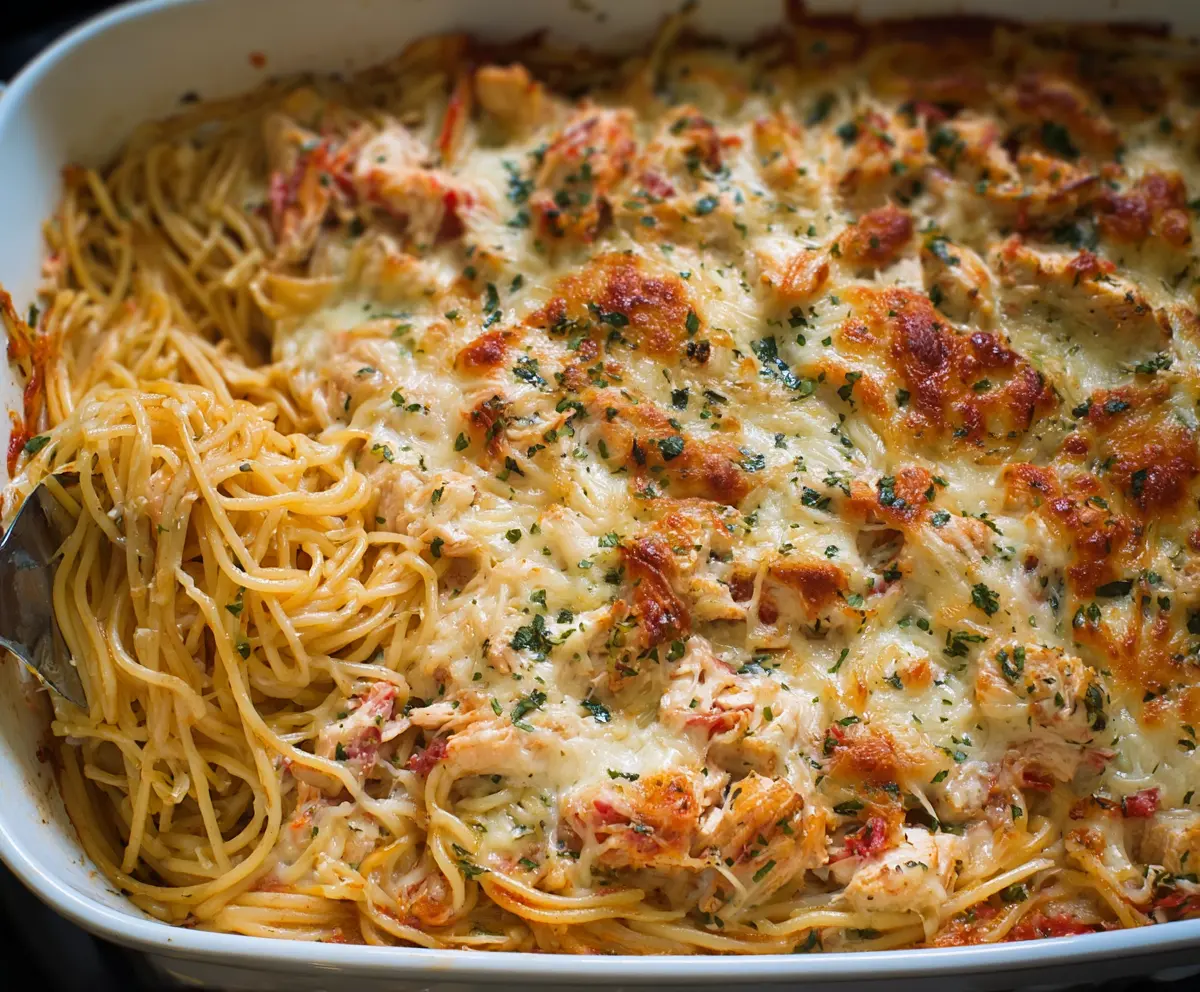 This Chicken Spaghetti Bake is comfort food at its best! With tender chicken, spaghetti, and a creamy sauce all baked together, every bite is a warm hug on a plate.