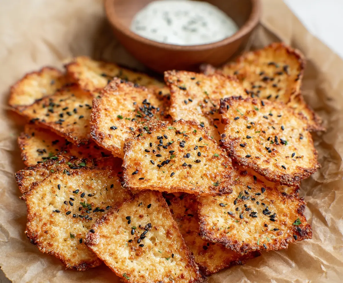 These crunchy, golden cheese chips are sure to impress with their delightful hints of garlic and herbs. Enjoy your guilt-free snacking! 🧀✨
