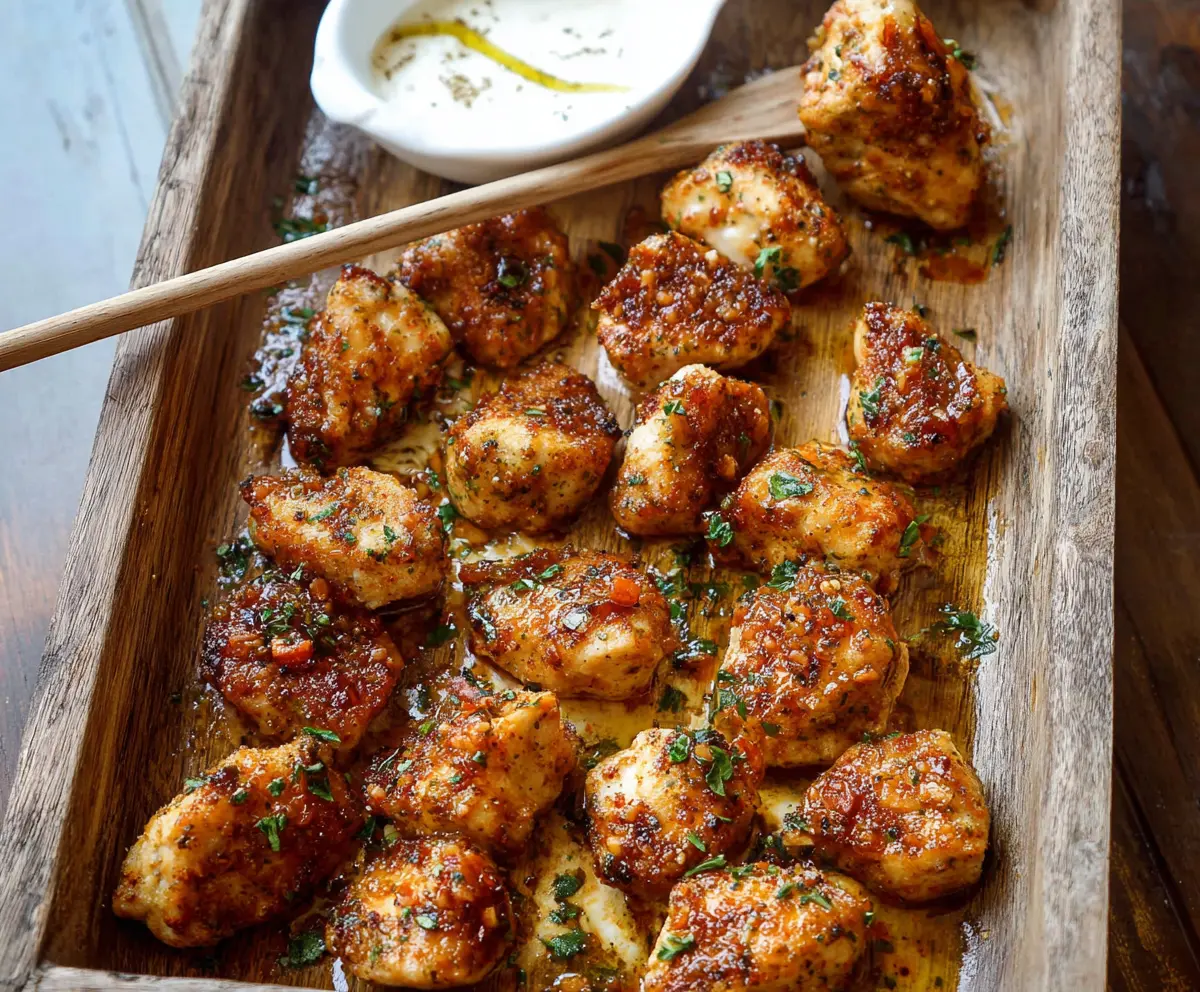 Transfer the chicken bites to a serving platter. You can garnish with extra parsley and lemon wedges for a pop of color. Serve warm with your favorite dipping sauce or just enjoy them plain—they’re totally delicious on their own!