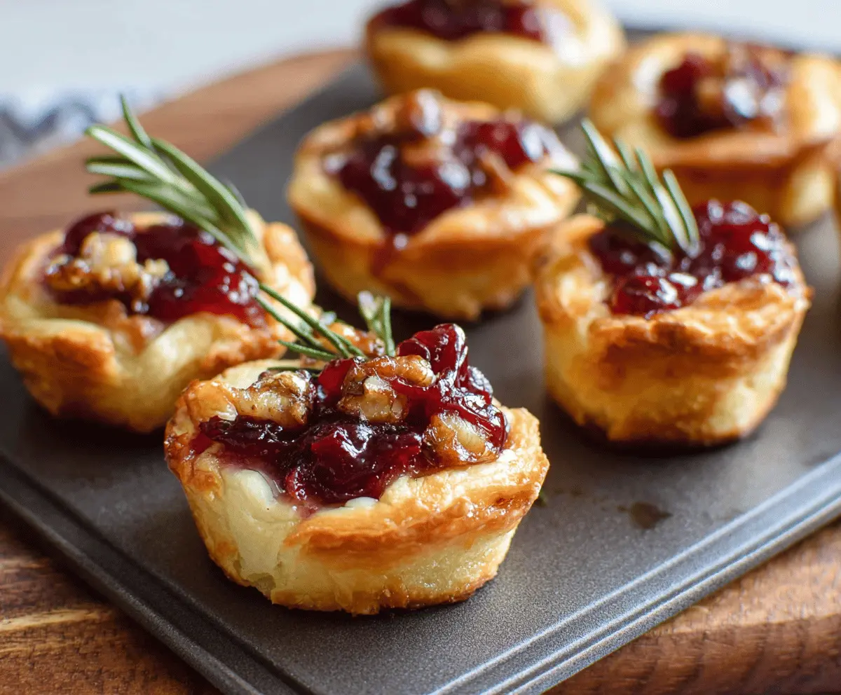 Cranberry Brie Bites are little bursts of joy! They’re made with creamy Brie cheese, sweet-tart cranberry sauce, all wrapped in crispy pastry. Perfect for snacks or parties!