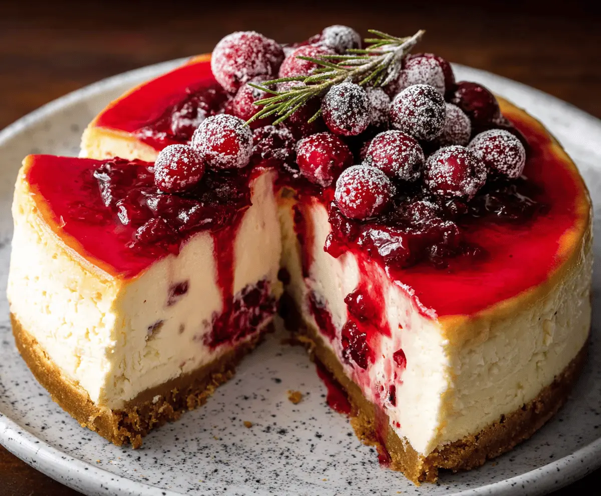 This cranberry cheesecake is a sweet and tangy treat that brightens up any dessert table. Its creamy texture and the tart burst of cranberries make it simply irresistible!