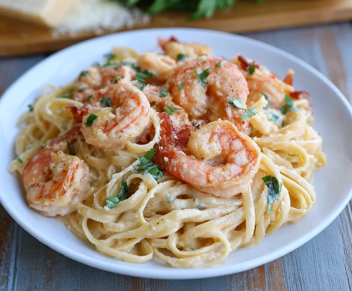This creamy garlic Parmesan shrimp pasta is a comforting dish that’s simple to whip up. Juicy shrimp and tender pasta are tossed in a rich, cheesy sauce that makes every bite heavenly!