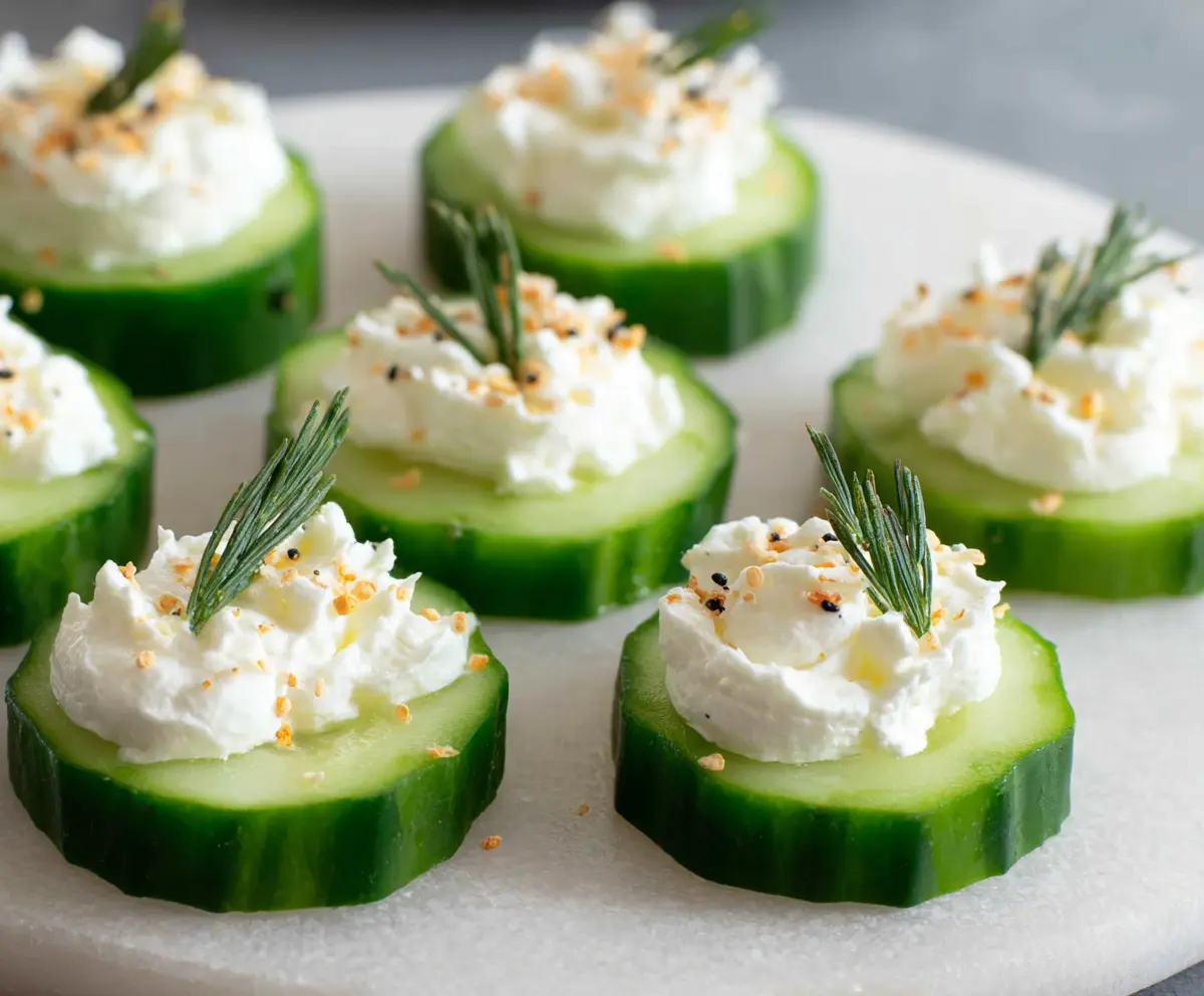 For the best texture, make sure to pat the cucumber slices dry after cutting. This helps the cream cheese adhere better and keeps everything from becoming too watery. Slicing the cucumber about 1/2 inch thick gives you the perfect sturdy base to hold all the toppings without breaking.