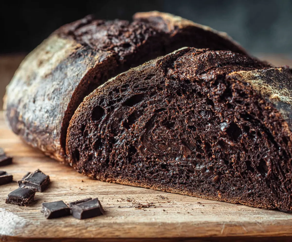 Enjoy your rich, chocolatey sourdough bread with a perfectly chewy texture and deep chocolatey flavor—perfect for breakfast or as an indulgent snack!