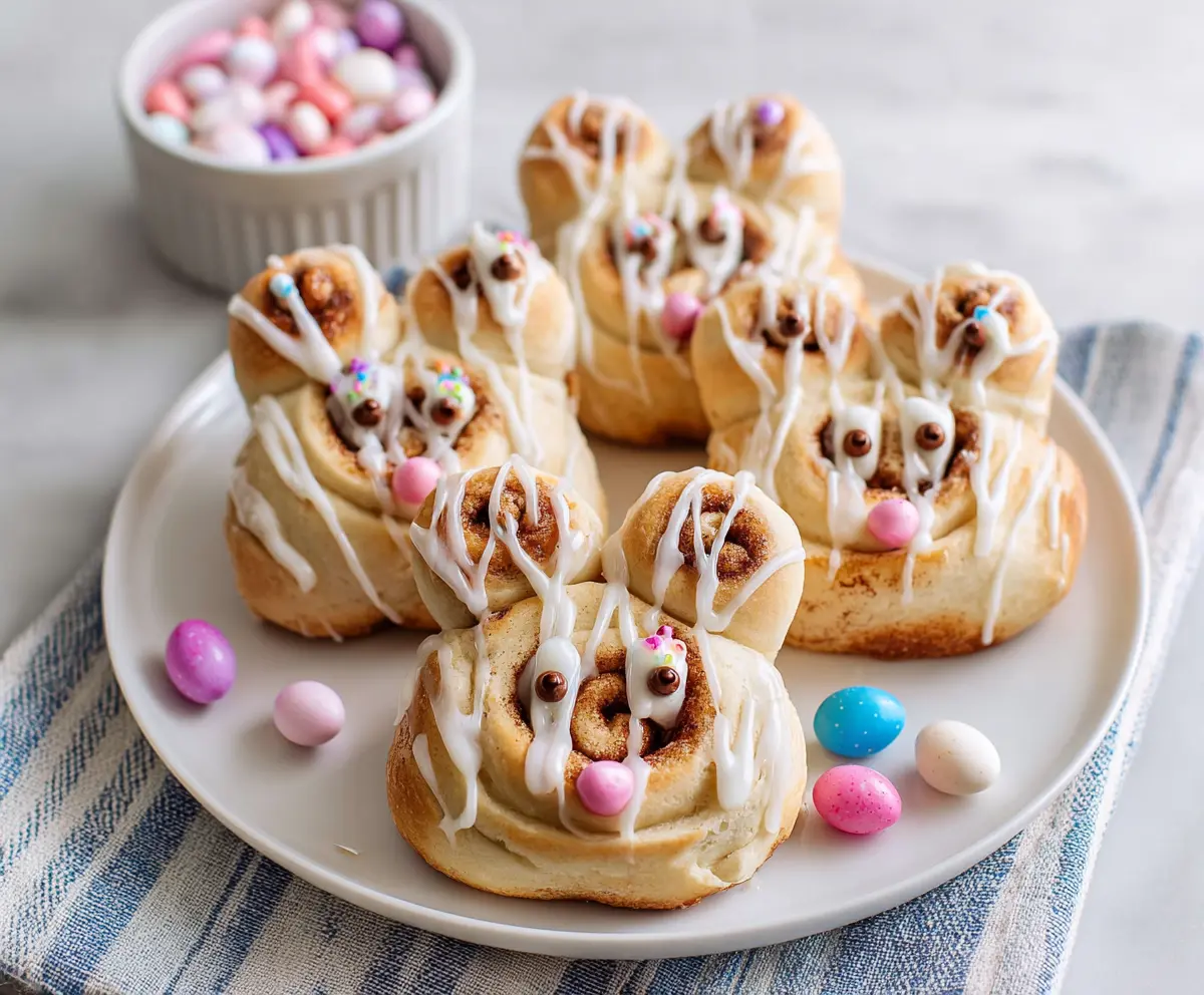 Enjoy these cute and festive Easter Bunny Cinnamon Rolls warm!