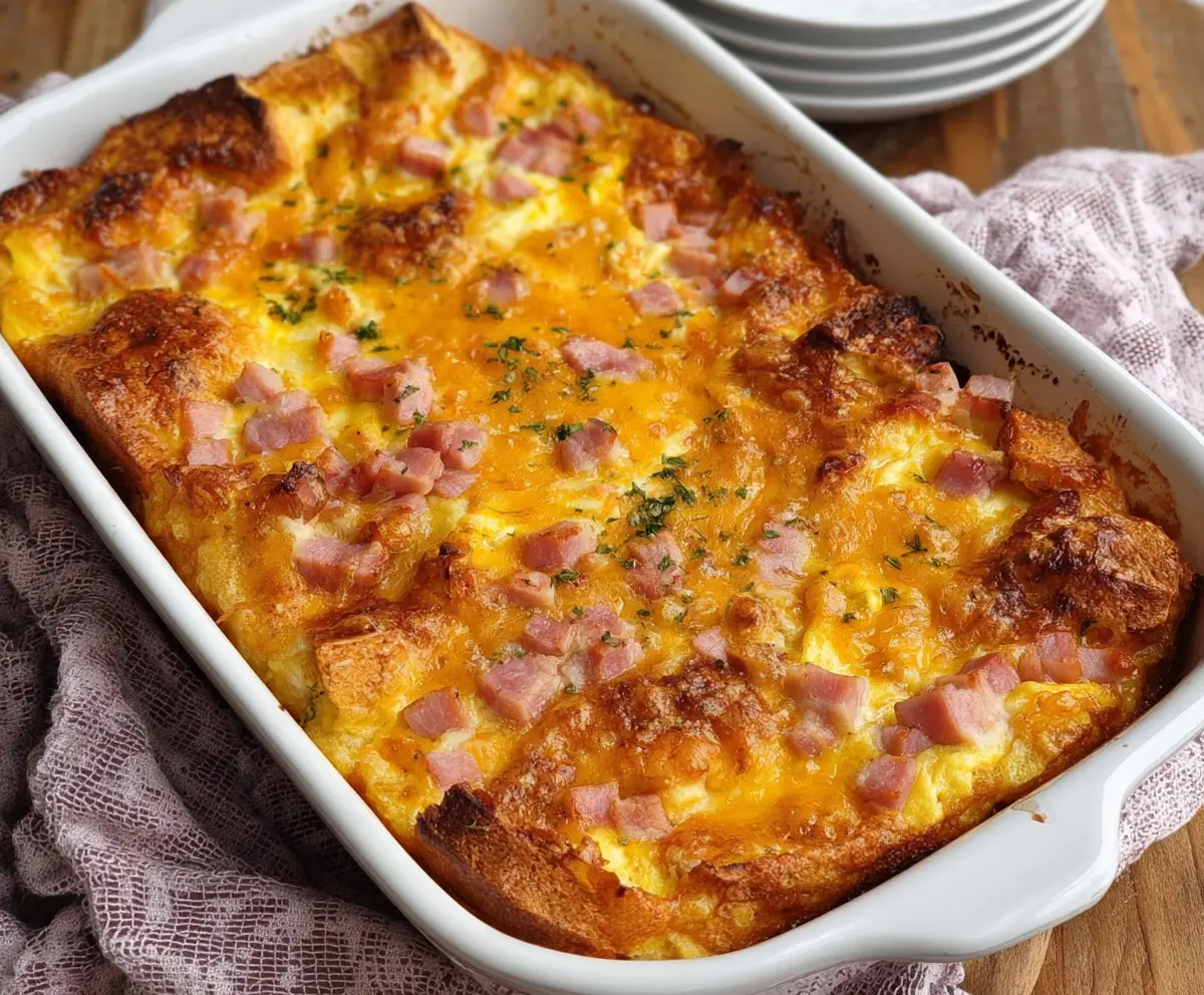 If you want to skip the ham, you could use cooked bacon, sausage, or even roasted vegetables for a vegetarian option. Just ensure any meat substitutes are fully cooked before adding them to the casserole.