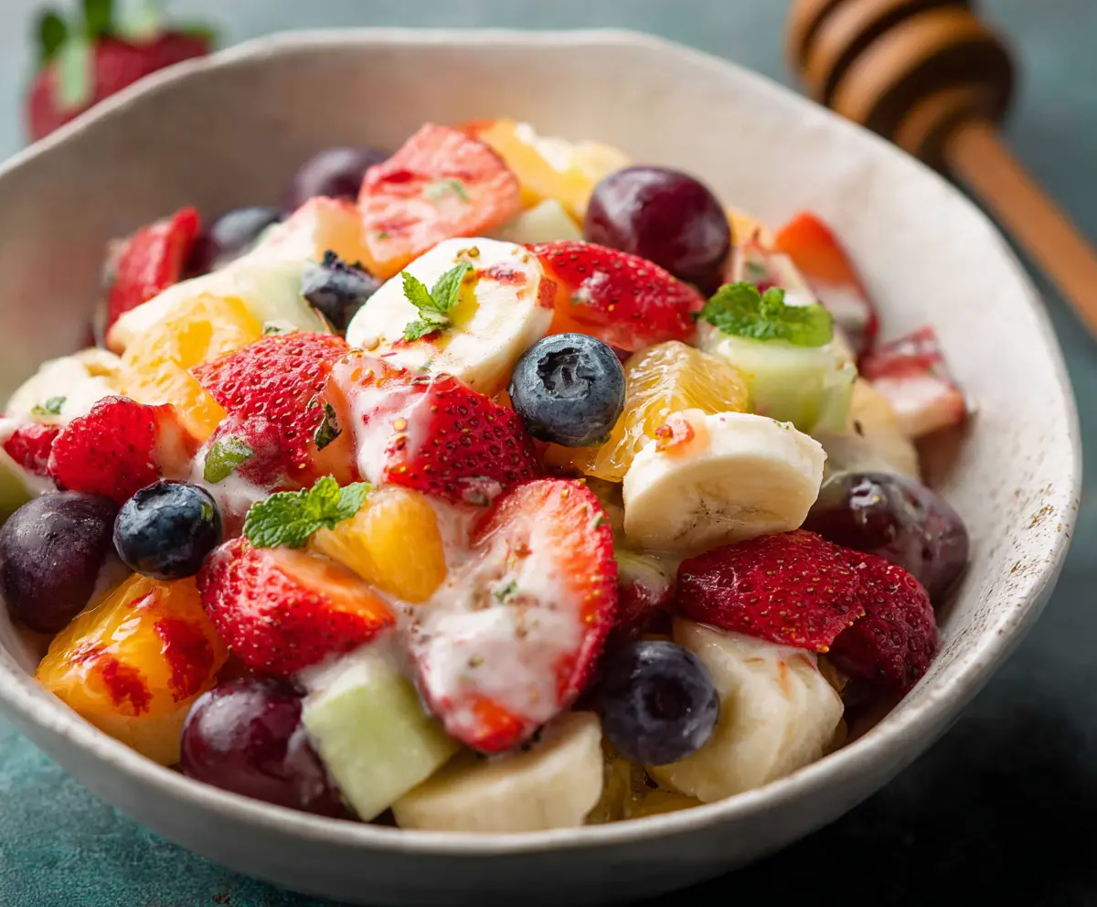 If you’d like a creamy dressing for your fruit salad, add the yogurt to the fruit mixture. Gently fold the yogurt into the fruits until they’re lightly coated. This adds a delicious creaminess that pairs wonderfully with the fruity flavors.