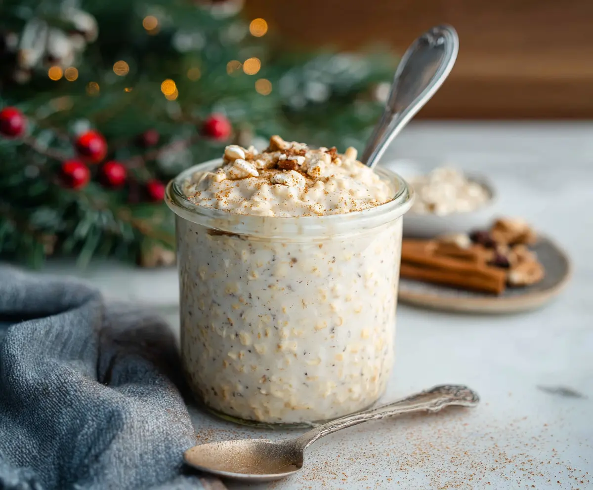 Now, enjoy your festive Eggnog Overnight Oats chilled! It’s the perfect cozy breakfast for those holiday mornings. Cheers to a delicious start to your day!