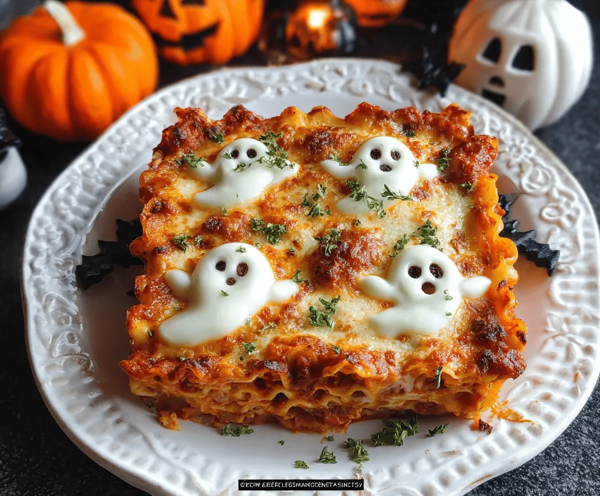 What makes this lasagna extra special is its playful ghostly design. I love serving it to friends—everyone giggles when they see the silly cheese ghosts peeking out. It’s a delicious treat that adds a bit of festive fun! 😄