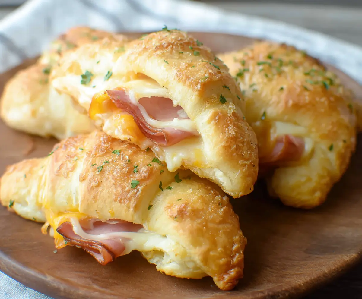 These Ham and Cheese Crescent Rolls are warm, flaky treats filled with melty cheese and savory ham. Perfect for a snack or a tasty addition to dinner!