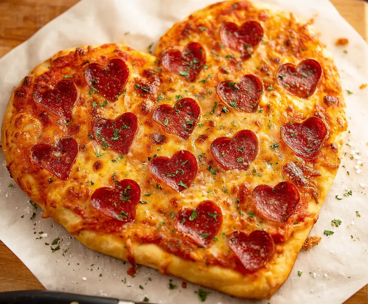 This heart-shaped pizza is perfect for showing some love! It’s cheesy, crispy, and topped with your favorite ingredients. Great for date nights or celebrating any special occasion!