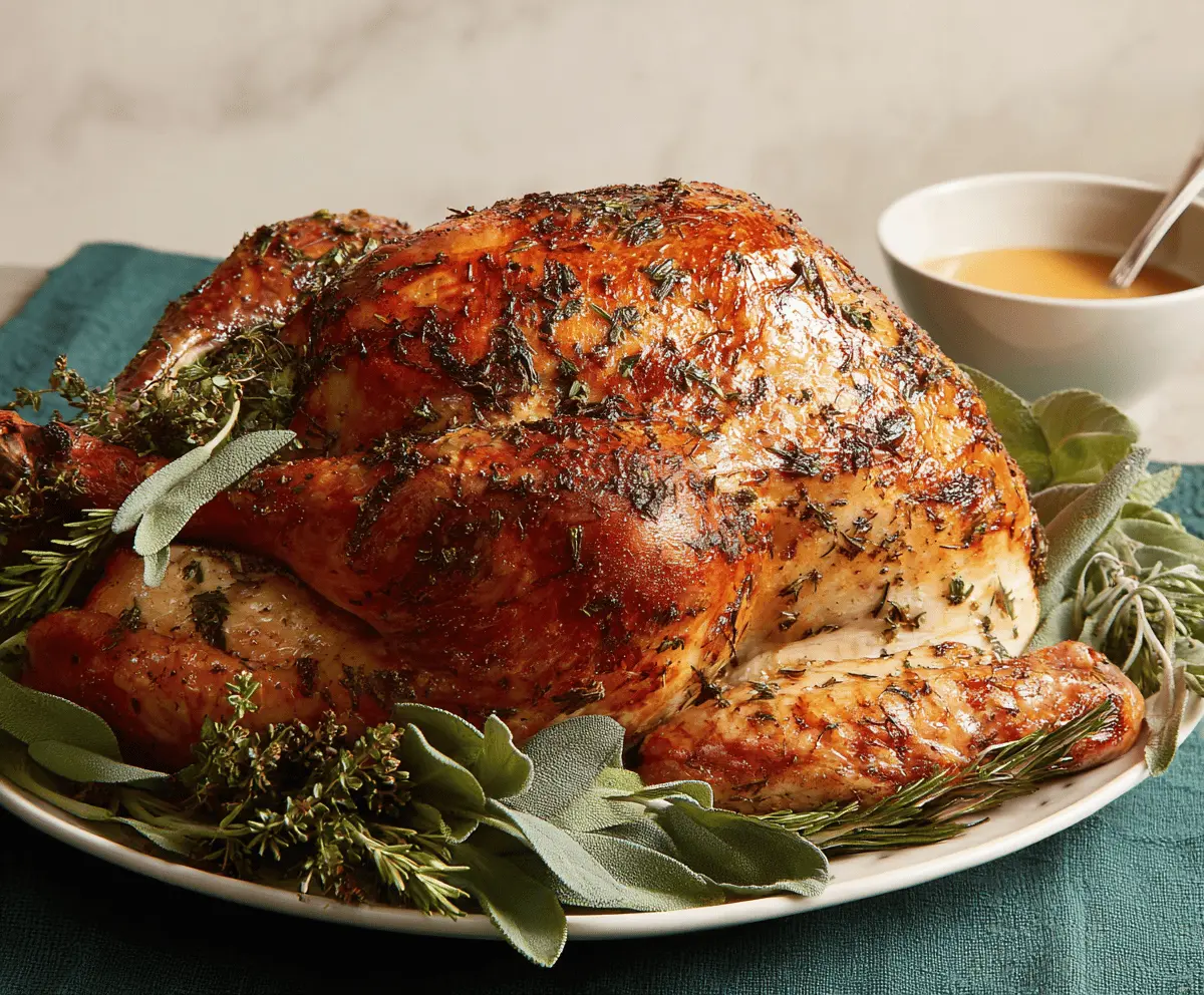 Bon appétit! Enjoy your golden, fragrant Herb Butter Roasted Turkey!