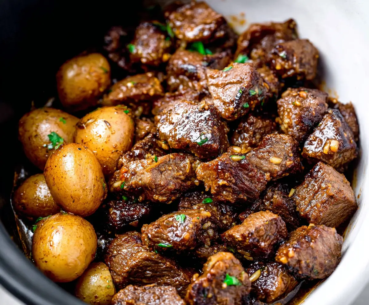 High Protein Slow Cooker Garlic Butter Beef Bites