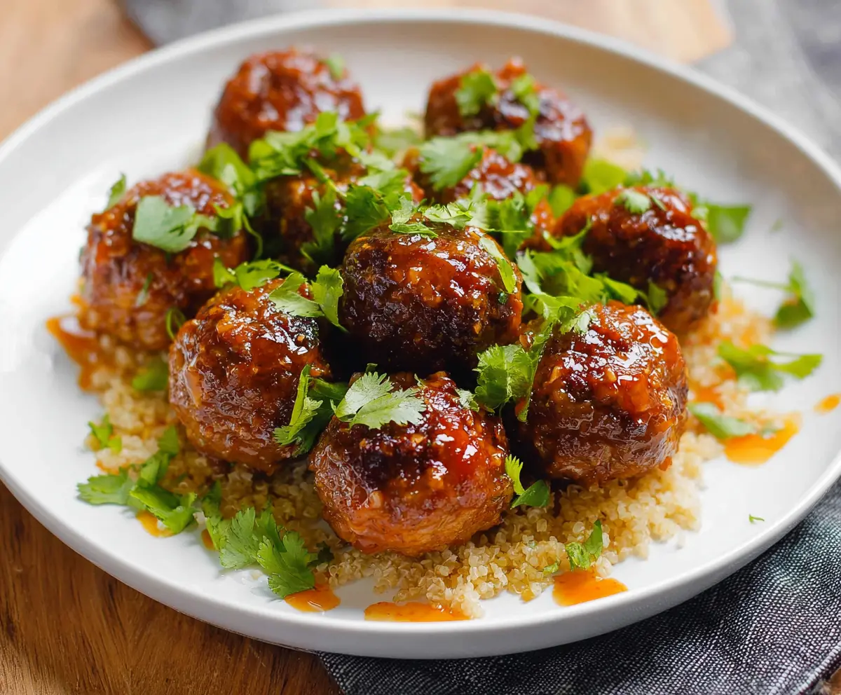 We love serving these meatballs over cooked quinoa or rice for a filling meal. Garnish the dish with chopped green onions, sesame seeds, and fresh cilantro if desired. They look great and taste even better!