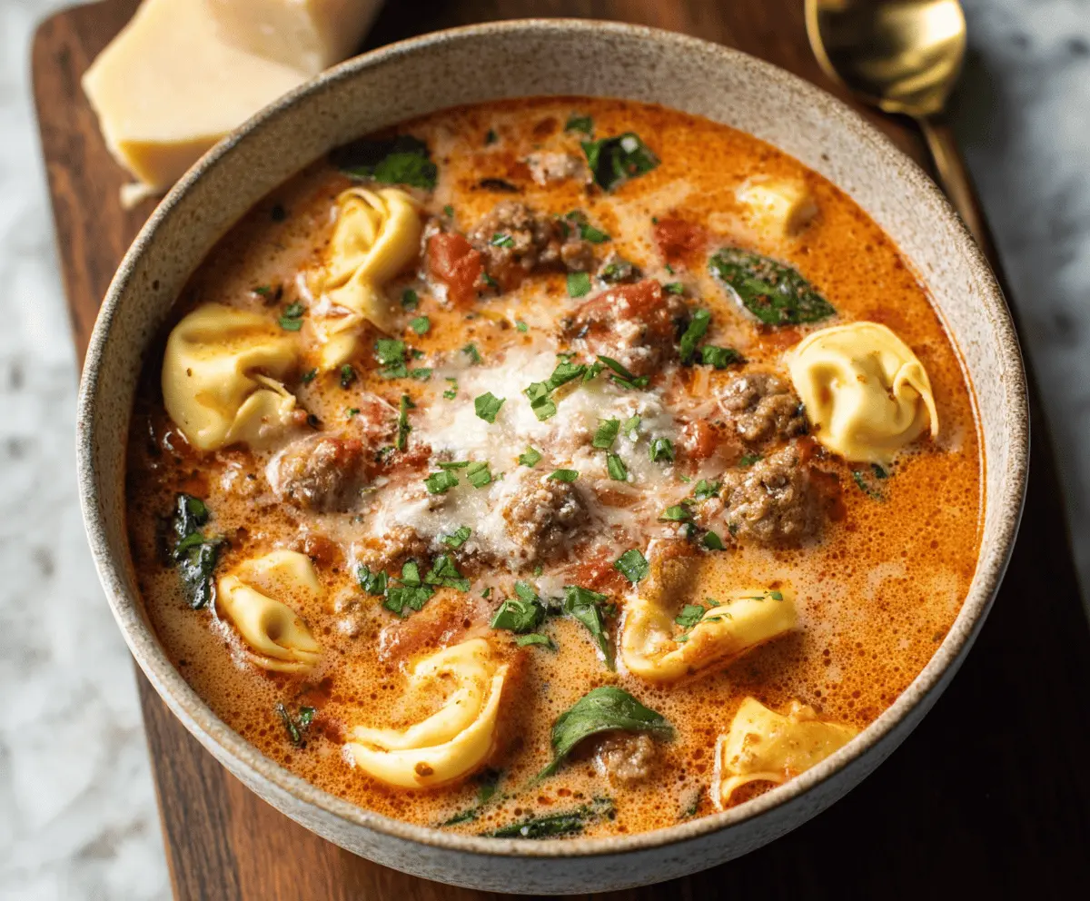 This Italian Sausage Tortellini Soup is a warm hug in a bowl! Packed with tasty sausage, tender tortellini, and fresh veggies, it’s delightfully comforting.