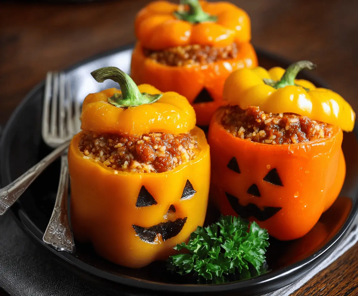 Enjoy your festive and tasty Jack-O’-Lantern Stuffed Peppers, a perfect and healthy dish for Halloween or cozy fall dinners!