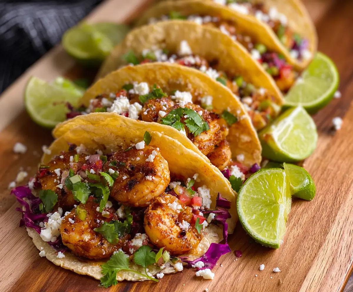 If you have any leftovers, store the components separately in airtight containers. The shrimp and toppings can last in the fridge for up to 2 days, but the tortillas are best fresh. Just reheat the shrimp and assemble the tacos when ready to eat!