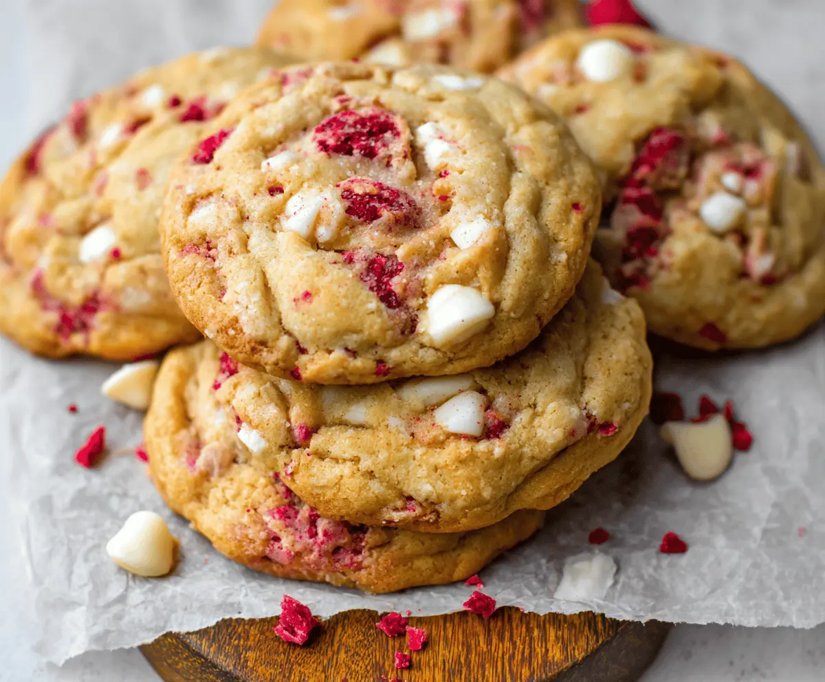 These cookies are sure to please with their delightful combination of sweet white chocolate and tart raspberry, creating a beautiful balance in every big, chewy cookie!