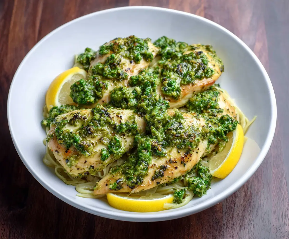 This Lemon Pesto Chicken dish is a zesty delight! Juicy chicken breast is coated in a fresh, vibrant pesto and a squeeze of lemon juice that brightens up every bite.