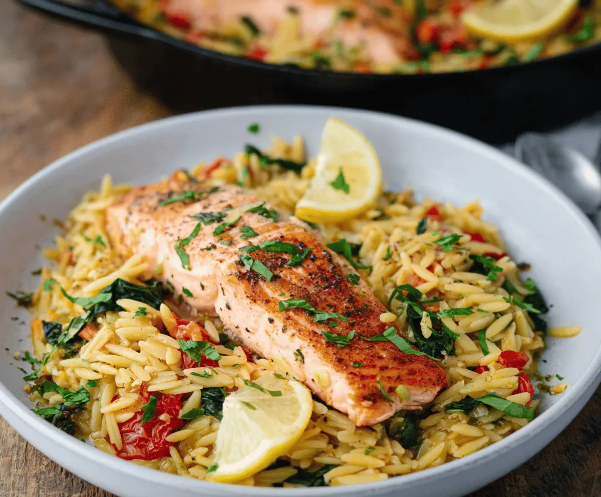 Enjoy your flavorful and colorful one skillet salmon with lemon orzo! This meal is not only delicious but also packed with nutrients, making it great for any occasion. Bon appétit!