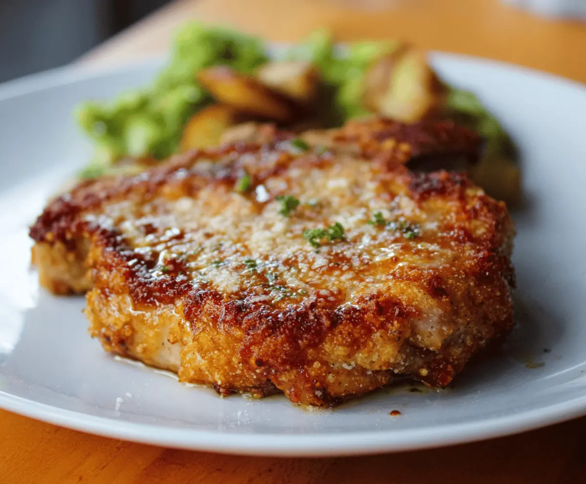 Plate your delicious Parmesan Crusted Pork Chops with sides such as roasted vegetables or creamy mashed cauliflower for a complete meal. Enjoy every bite of your crispy, juicy creation!