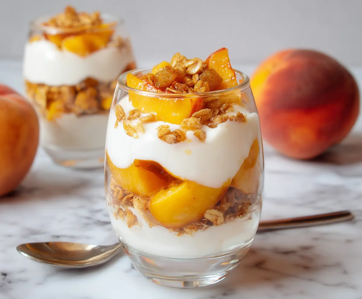 I love making these for breakfast or a fun snack. Just layer yogurt, peaches, and granola in a glass, and you’re all set for a tasty treat that looks fancy! 🍑😊