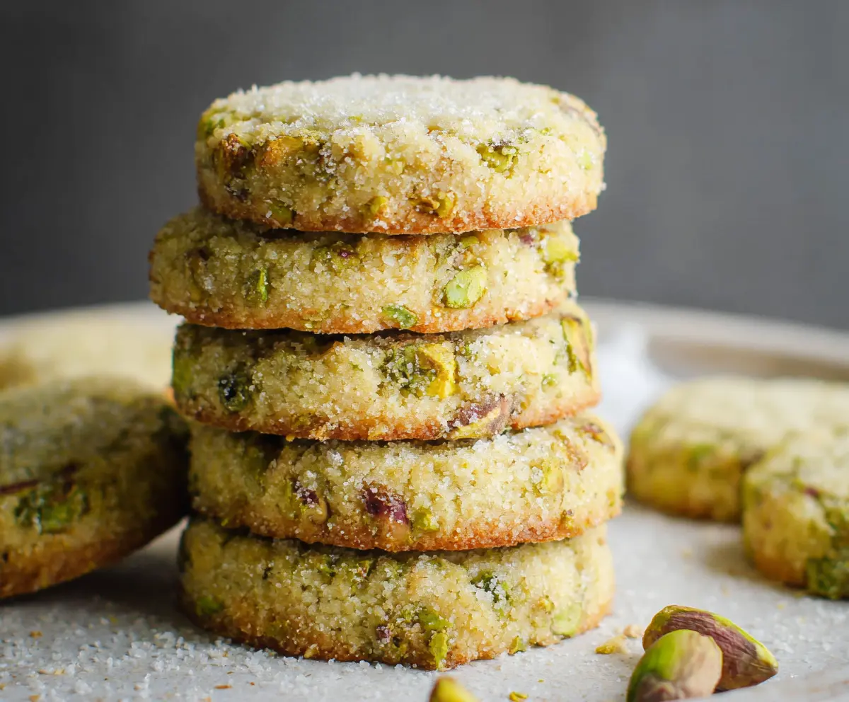 Enjoy your buttery, crumbly pistachio shortbread cookies with a warm cup of tea or coffee!