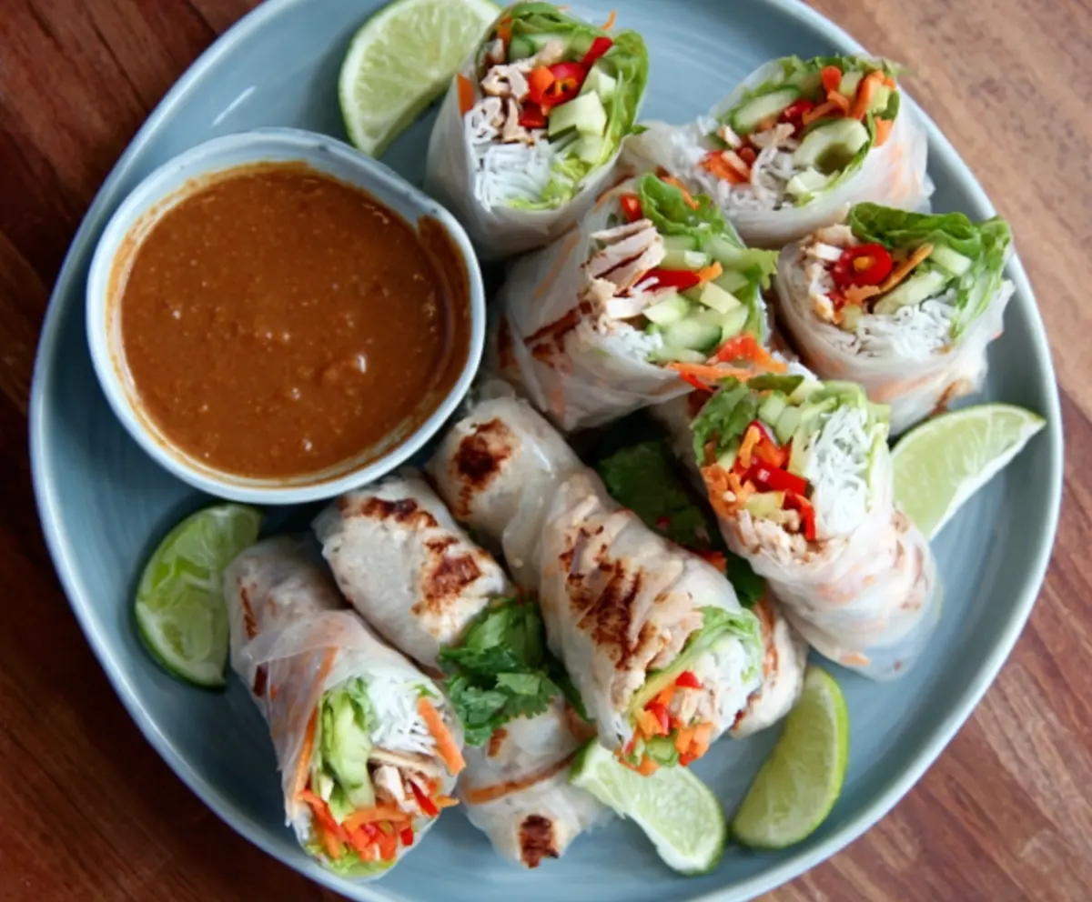 Enjoy these fresh and flavorful pork spring rolls with a delightful dip in the creamy peanut lime sauce!