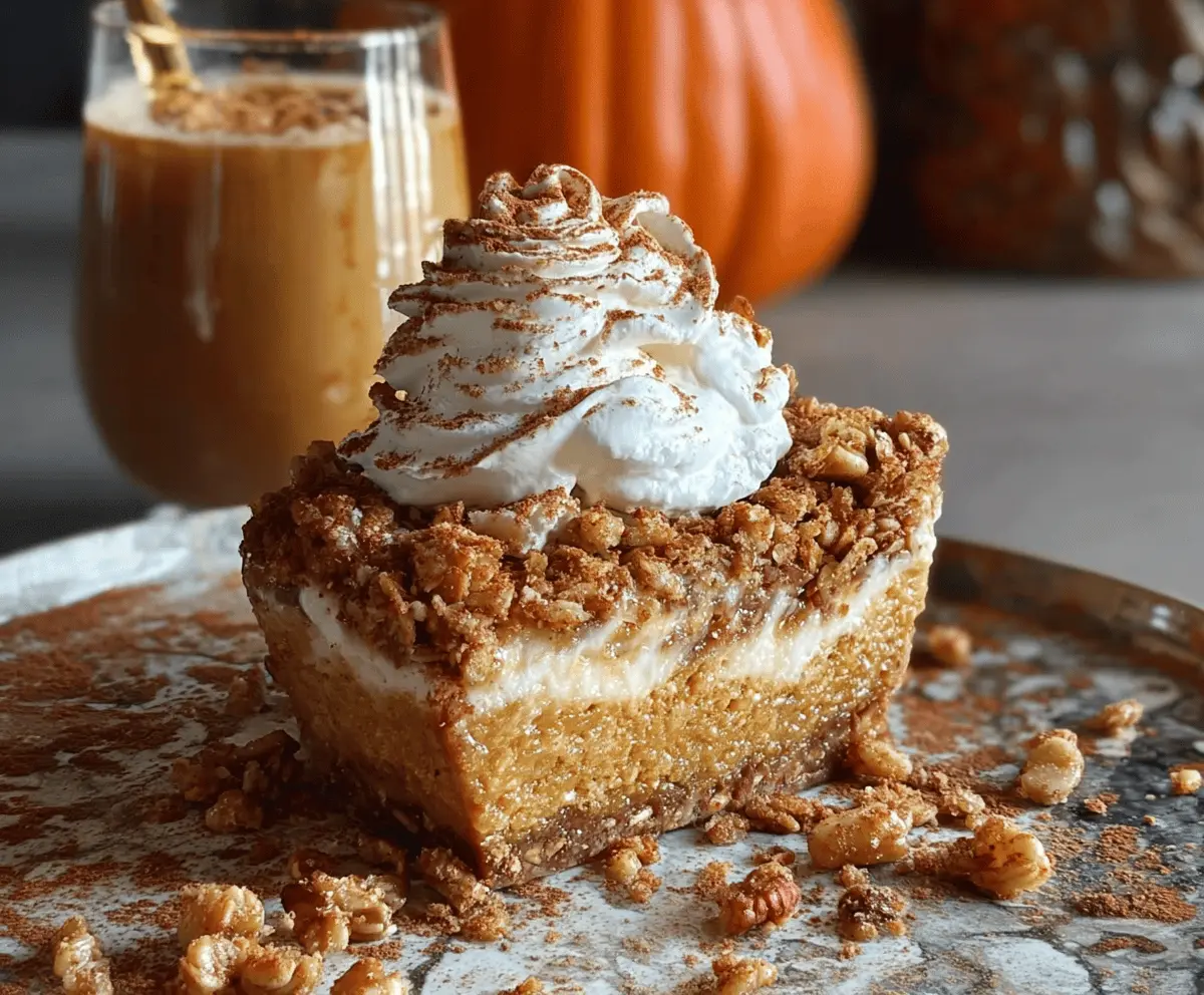 Delicious Pumpkin Autumn Crunch Delight dessert featuring layered pumpkin filling, crunchy topping, and seasonal spices, perfect for fall celebrations
