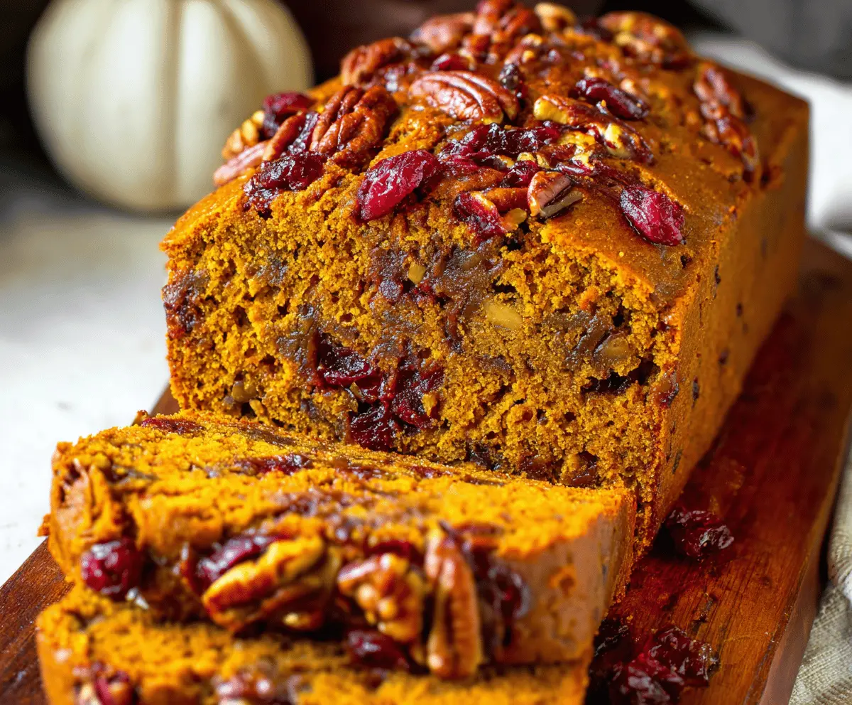 This moist and warmly spiced bread, filled with tangy cranberries and crunchy pecans, is perfect for fall gatherings or as a comforting treat. Happy baking!