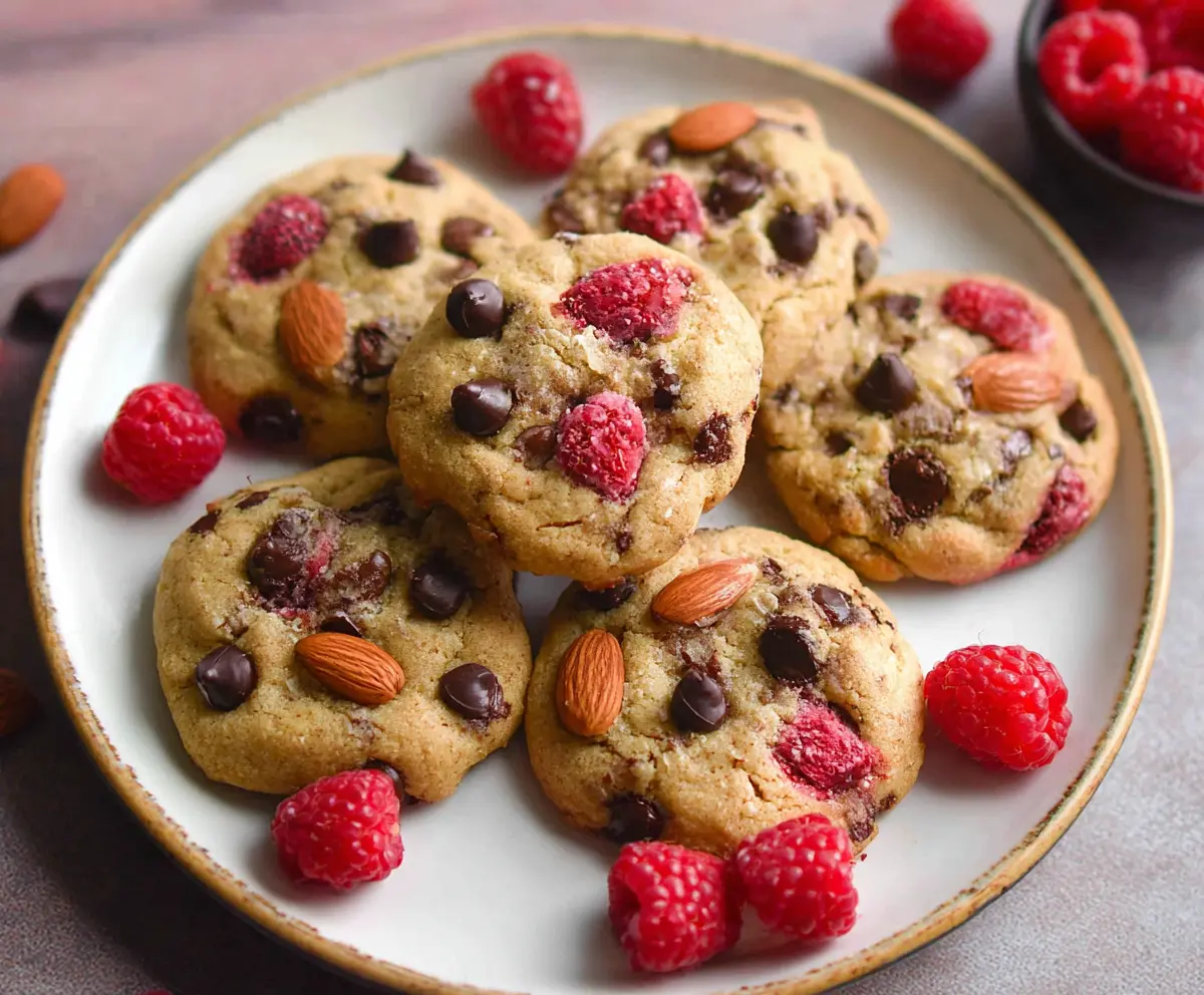 These Raspberry Almond Chocolate Chip Cookies are a tasty treat! They blend sweet raspberries with crunchy almonds and rich chocolate chips, making each bite special.