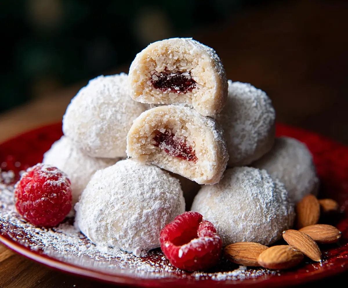 Raspberry Almond Snowball Cookies