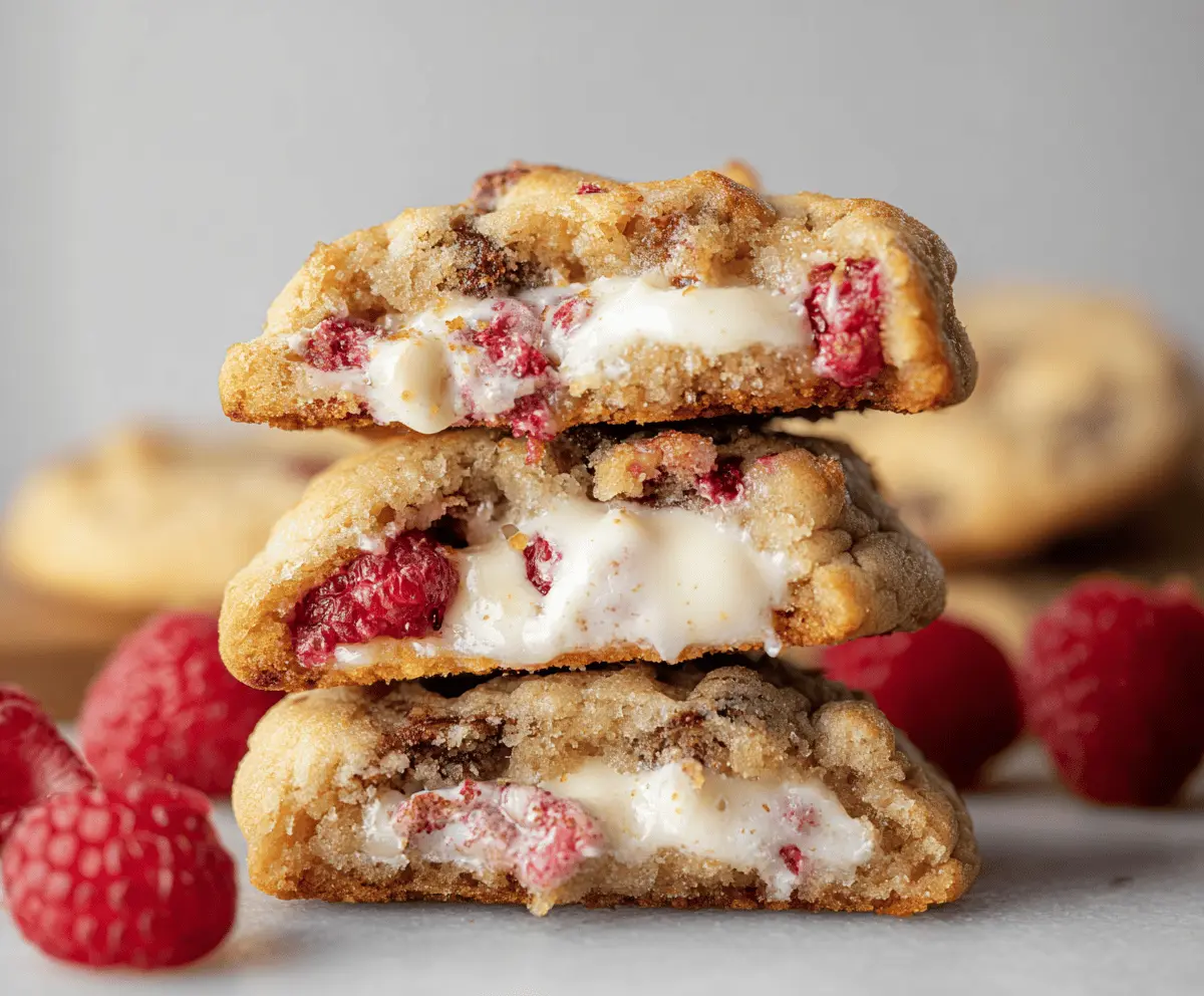 These Raspberry Cheesecake Stuffed Cookies are a sweet surprise! Each cookie has a creamy cheesecake center with a burst of raspberry flavor. Soft and chewy, they’re simply irresistible!