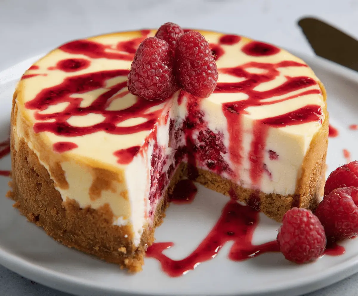 When you’re ready to serve, your delightful raspberry cheesecake will be all set! You can garnish it with some fresh raspberries on top and drizzle extra raspberry sauce if desired. Slice up and enjoy your creamy, luscious dessert that’s sure to impress everyone!